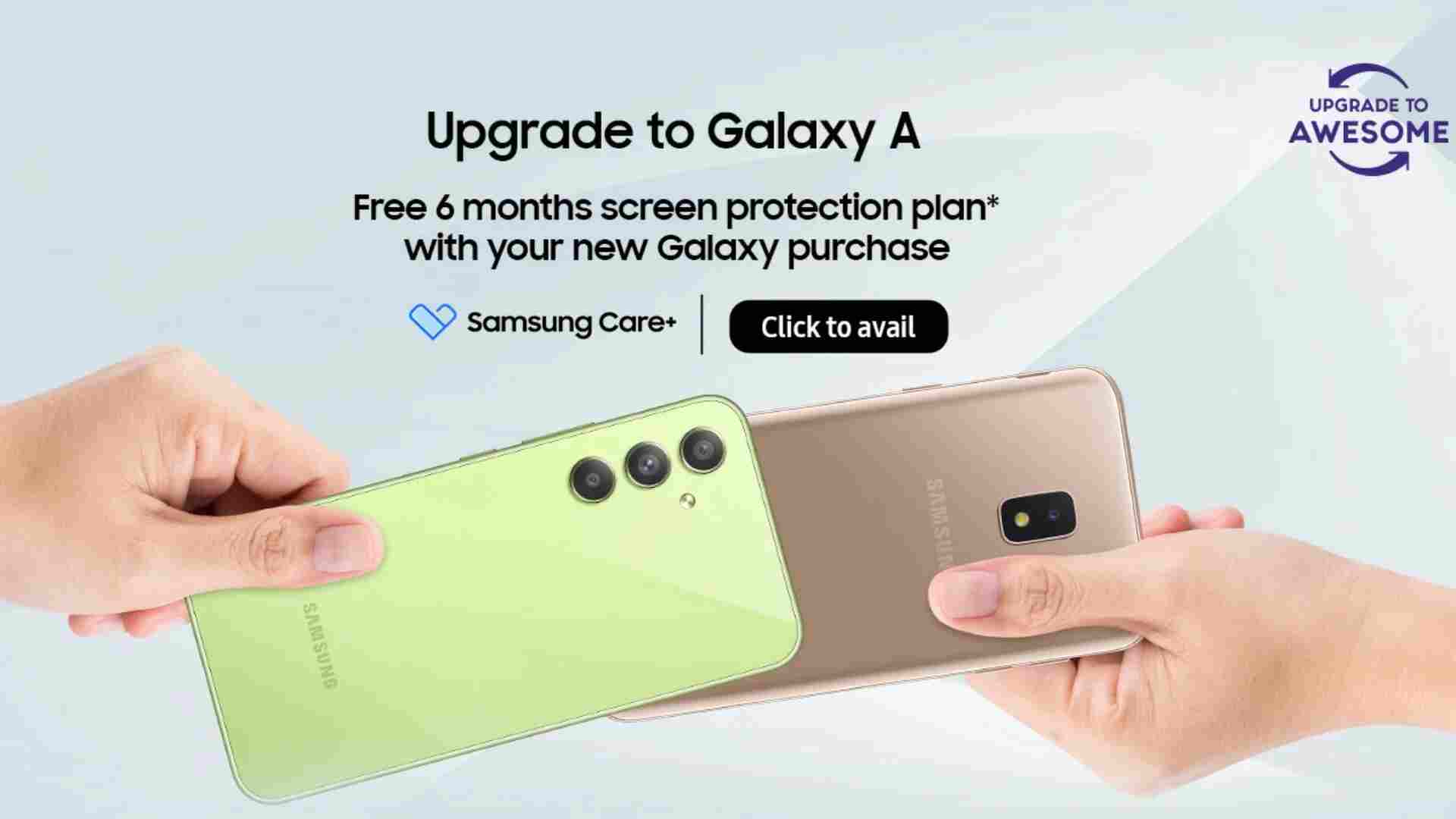 Samsung’s new ‘Upgrade to Awesome’ scheme is a unique program designed to help users upgrade their older pre-2020 Galaxy handsets to the latest 5G Galaxy A series smartphones in India. The company is offering a free Samsung Care+ screen protection pack on the upgrade, along with special offers and cashback. This is in addition to the existing festive cashback and affordability promotions on the Galaxy A-series phones.
